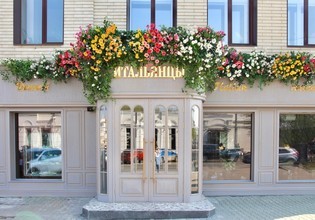 Заведение привлекает внимание ещё с улицы: из динамиков играют итальянские песни, а над вывеской свисают красивые цветы ярких оттенков.